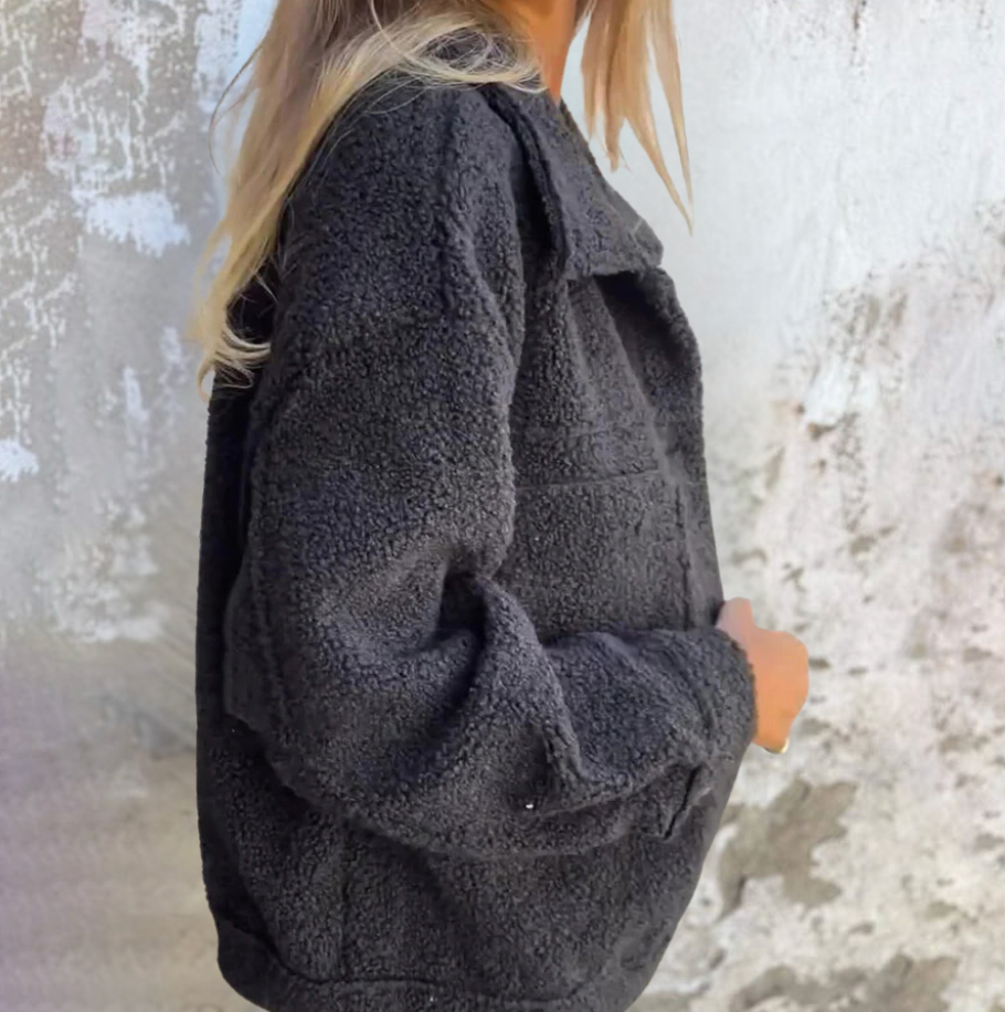 Omhul jezelf met warmte en stijl met de Angela jas. Deze chique, teddy-textuur jas is ontworpen om comfort toe te voegen aan je dagelijkse look, perfect om te dragen op koude dagen. Of je nu een elegante outfit samenstelt of het casual houdt, de Angela jas voegt een vleugje verfijning en gezelligheid toe aan elke look. Voel je zelfverzekerd en ontspannen, wat de gelegenheid ook is.